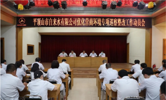 會議由公司黨委副書記、工會主席李建中主持。黨委委員、副總經(jīng)理楊永戰(zhàn)首先傳達(dá)市委巡察組專項巡察市城市管理局黨組優(yōu)化營商環(huán)境工作情況反饋意見中有關(guān)供水方面存在的問題;黨委委員、副總經(jīng)理劉振勇傳達(dá)市委巡察工作領(lǐng)導(dǎo)小組《關(guān)于印發(fā)〈優(yōu)化營商環(huán)境專項巡察反饋意見〉的通知》精神;公司黨委委員、監(jiān)事胡付廷傳達(dá)市委巡察工作領(lǐng)導(dǎo)小組《巡察督辦整改通知書》精神;黨委書記、董事長楊偉新對巡察整改工作進行動員,并對下一步工作進行部署。