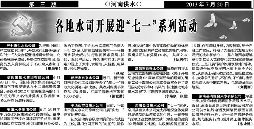 > 各地水司開(kāi)展迎“七一”系列活動(dòng)